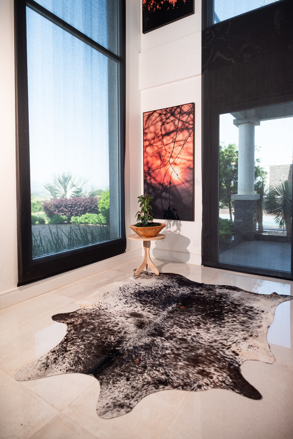 Os Tapetes Salpicados se destacam por seu padrão inusitado e elegante: manchas em formato de gotas, que se espalham sobre o couro criando um efeito visual salpicado — em misturas como preto com branco ou marrom com branco. Cada peça é uma expressão autêntica da natureza, com desenhos únicos e acabamento premium.